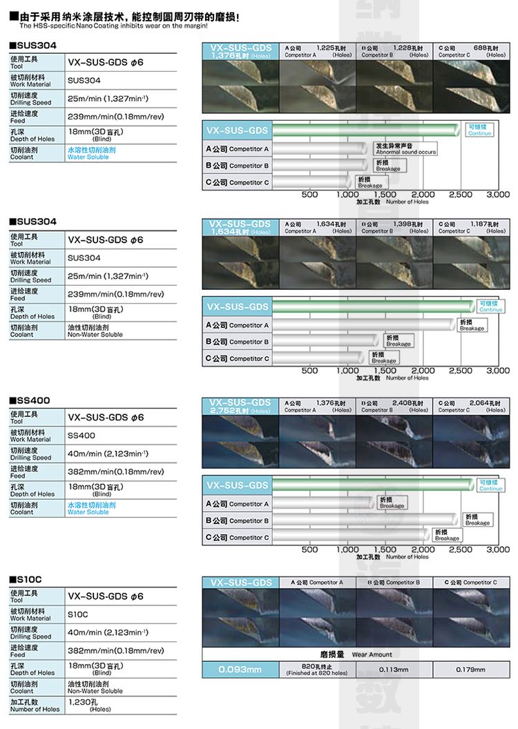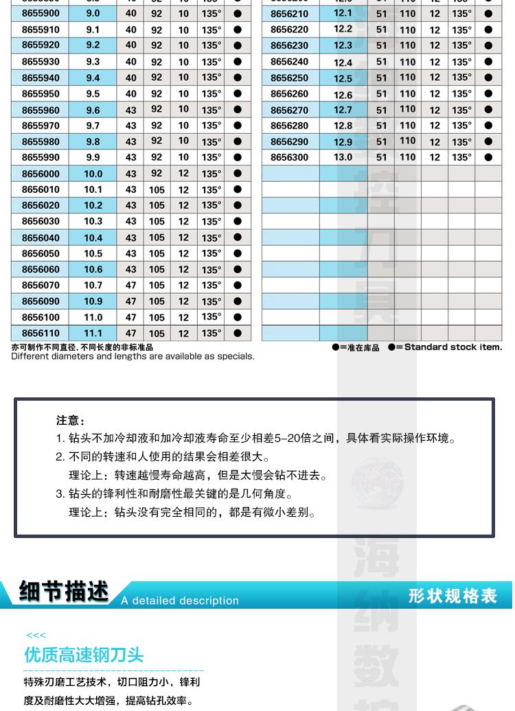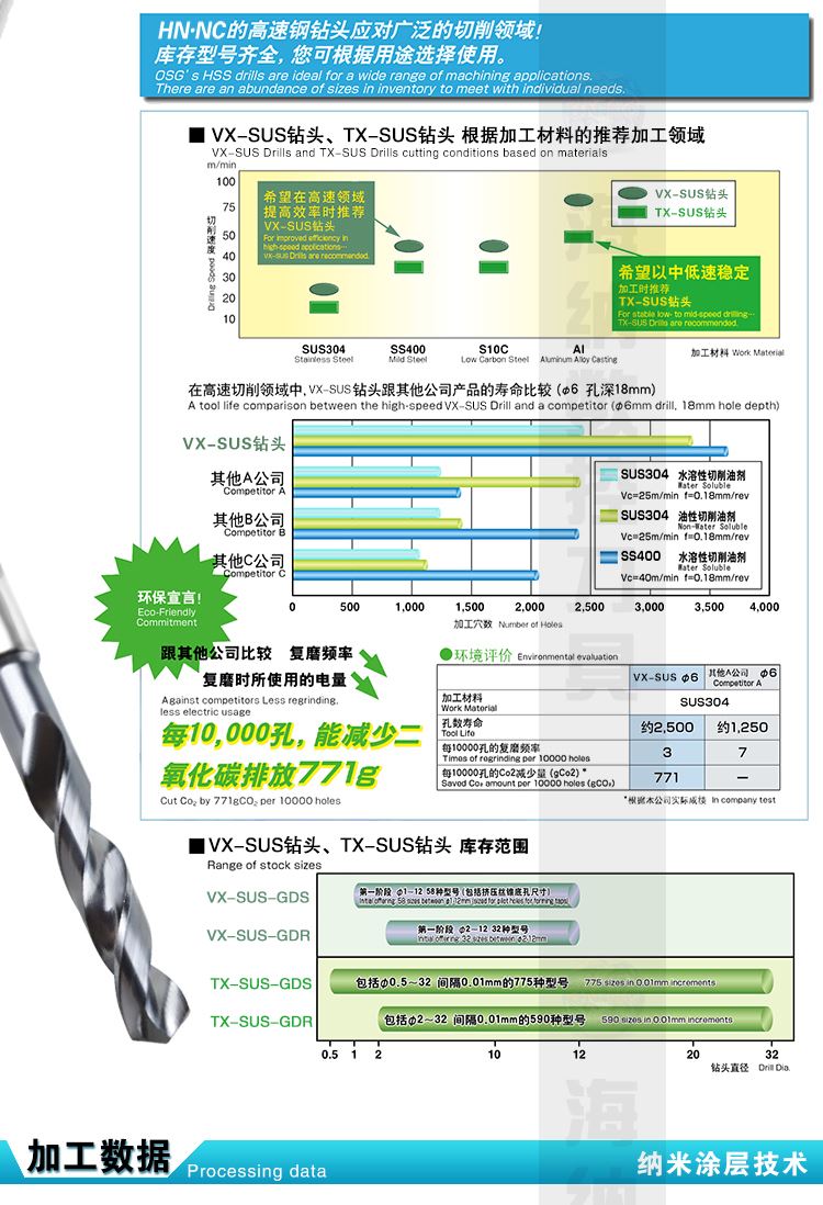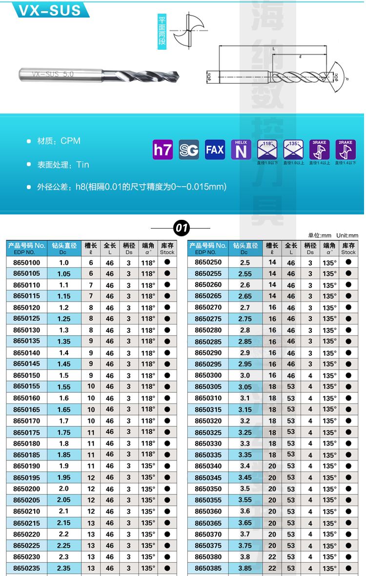 HN·NC海纳VX-SUS 7.0粉末冶金高速钢直柄麻花钻头