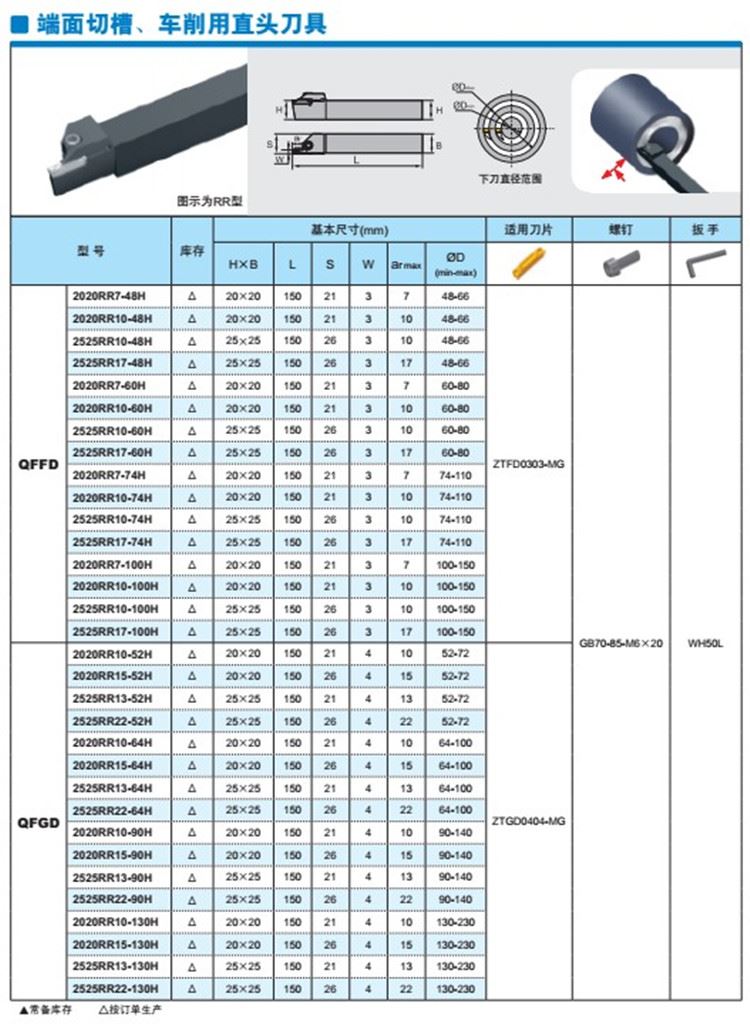 海纳端面切槽车刀杆QFFD2525RR10-100H/74H/60H/48H数控刀具