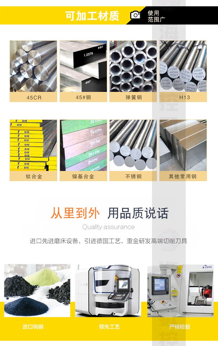 • 适用材质:碳钢/合金钢,不锈钢/不锈钢铸件,灰口铸铁/球墨铸铁,钛合金/镍合金,高硬材料