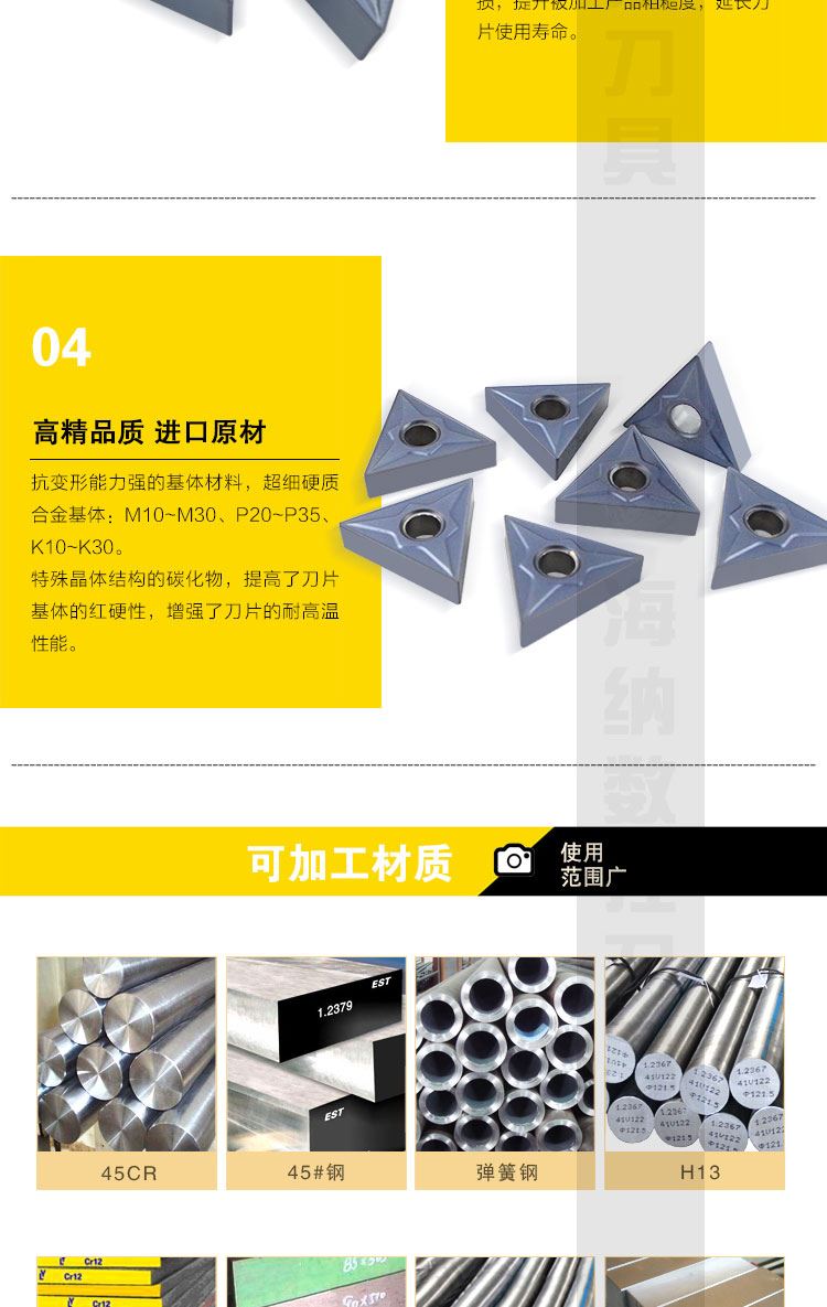 • 适用材质:碳钢/合金钢,不锈钢/不锈钢铸件,灰口铸铁/球墨铸铁,钛合金/镍合金,高硬材料