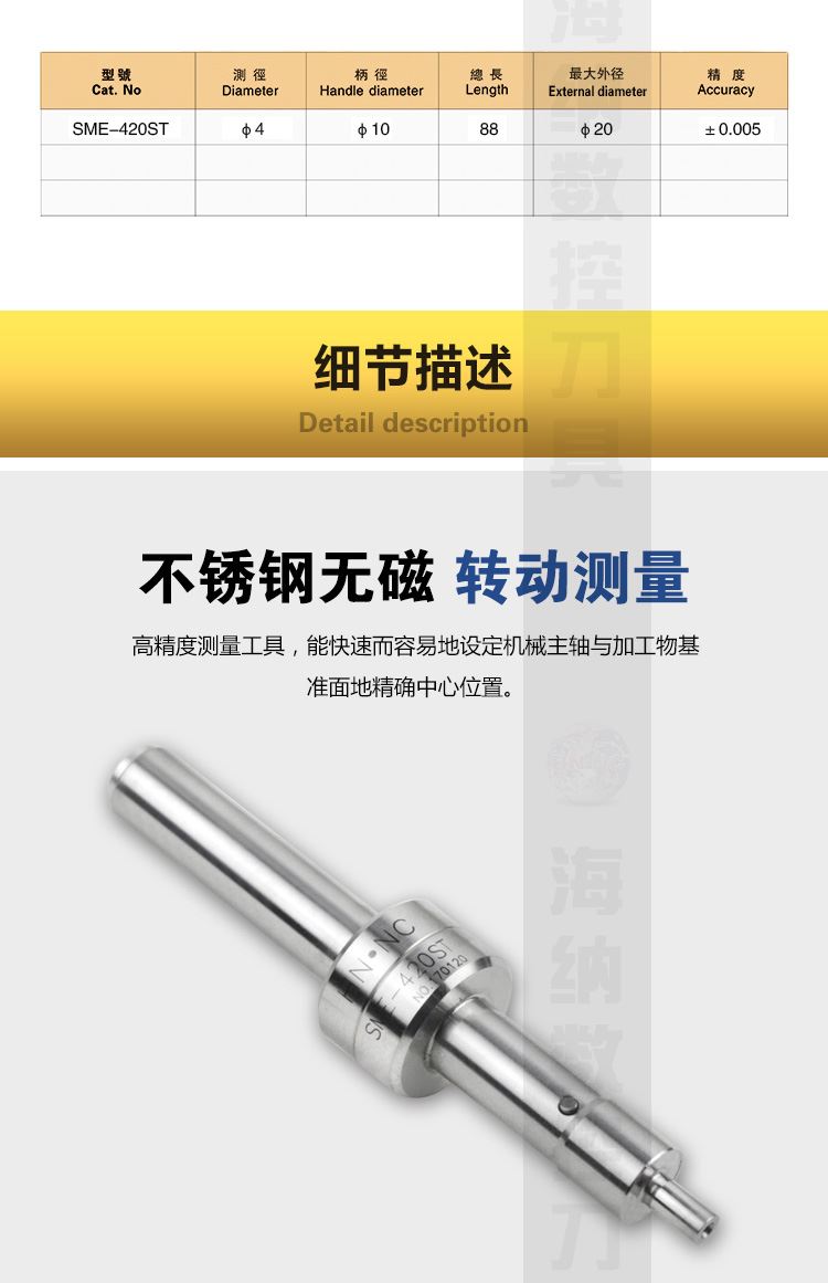 海纳SME-420ST不锈钢无磁偏心式机械回转式寻边器防磁分中棒