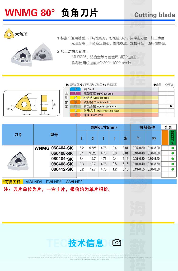 NASKA纳斯卡WNMG080404/08SK黄铜紫铜非金属桃型外径数控车刀片