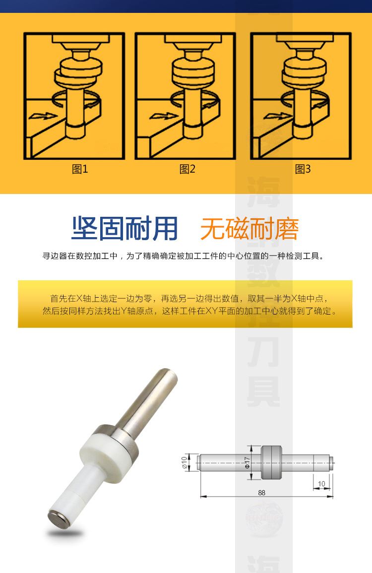 HN·NC海纳CME-1020陶瓷偏心式寻边器无磁机械式分中棒10mm侧头