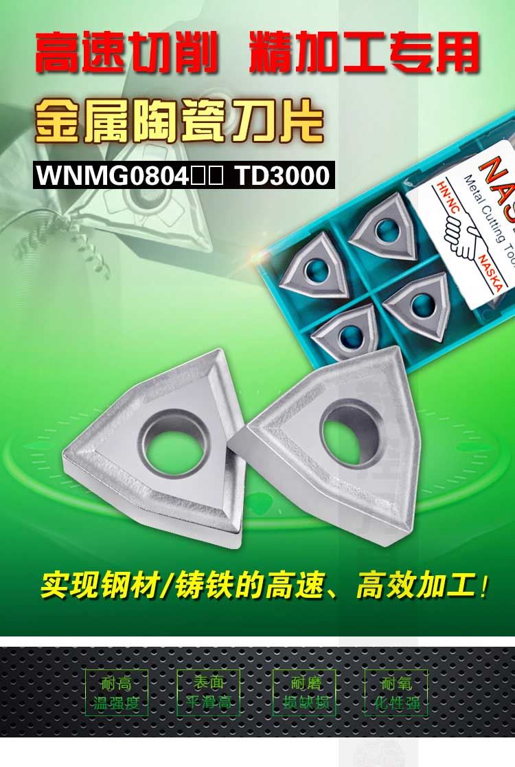 NASKA纳斯卡金属陶瓷车刀片WNMG080404/08桃型钢件专用外圆车刀粒