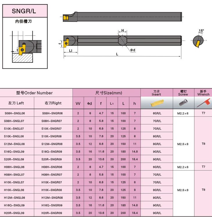 海纳内径切槽刀杆SNGR/L12M08/10K08/10K07/08H07/08H06内孔切槽刀