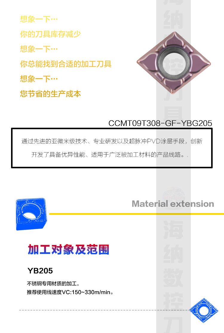 盈东CCMT09T304GF YBG205不锈钢车刀片镗孔车刀片菱形80度