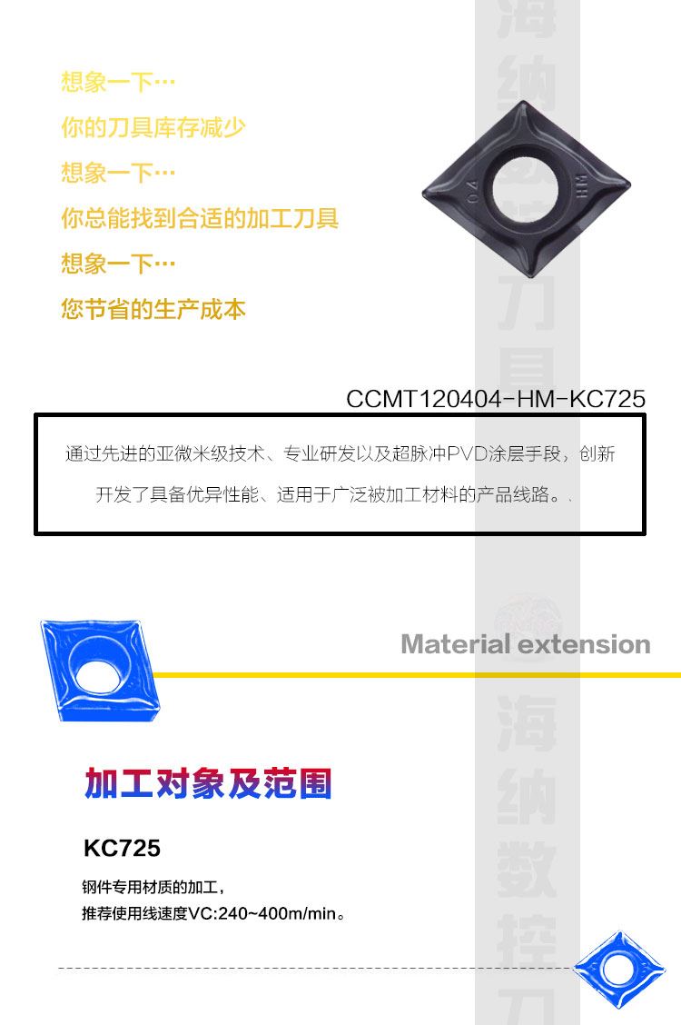 海纳CCMT120404/08HM KC725硬质合金涂层钢件专用菱形数控车刀片