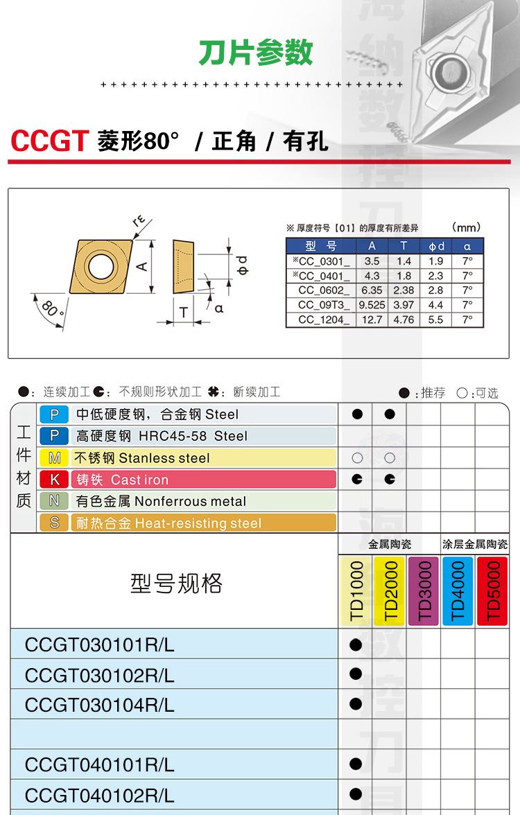纳斯卡CCGT09T302FR-U TD2000金属陶瓷铸铁专用菱形精车数控车刀片