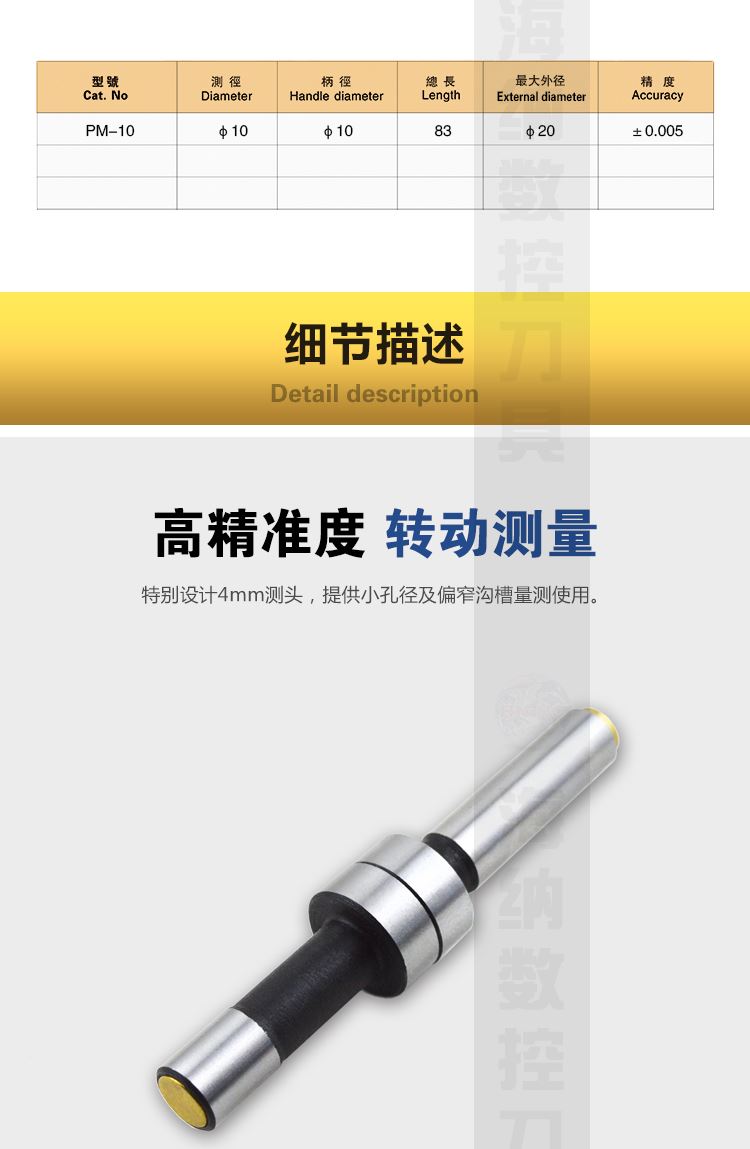HN·NC海纳PM10偏心式机械寻边器回转式偏心分中棒10mm找正器