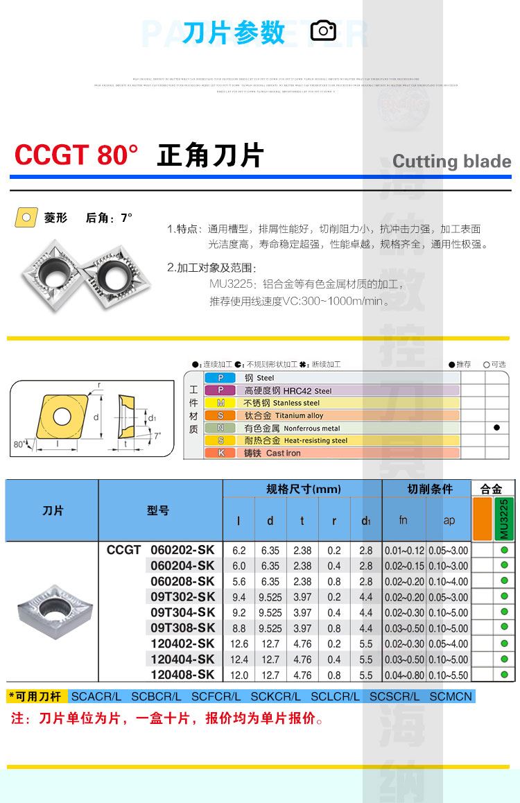 进口NASKA纳斯卡CCGT09T308SK MU3225黄铜紫铜非金属用菱形镗孔刀片