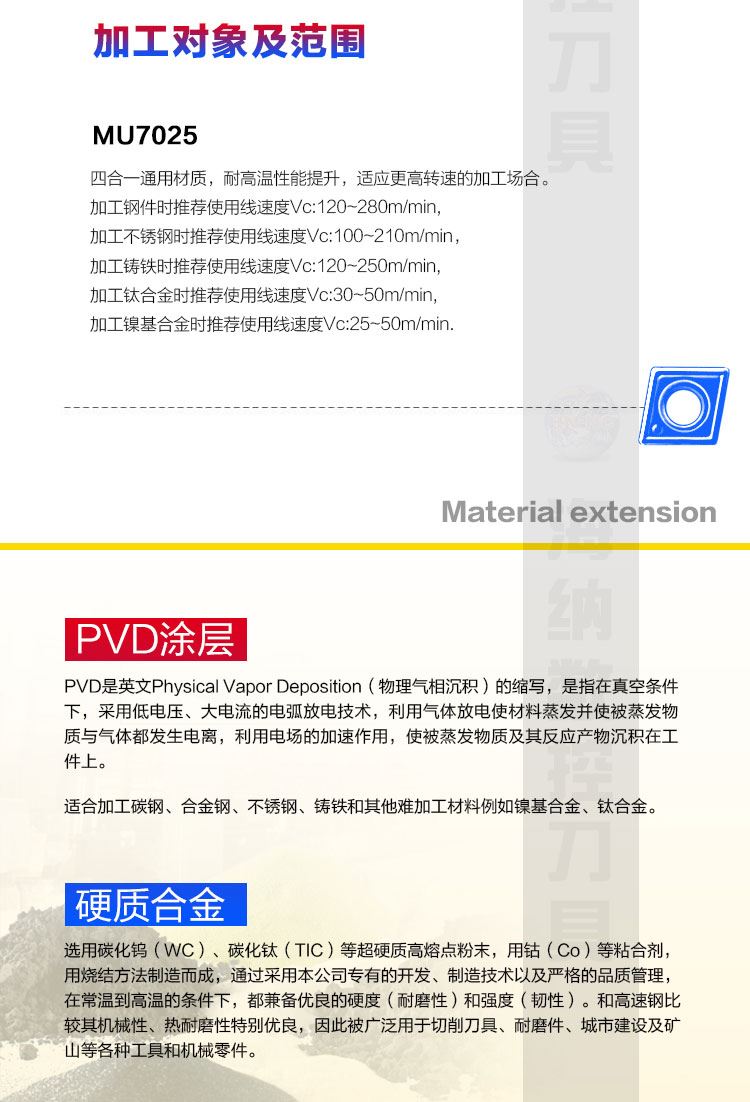 • 适用材质:碳钢/合金钢,不锈钢/不锈钢铸件,灰口铸铁/球墨铸铁,钛合金/镍合金,高硬材料