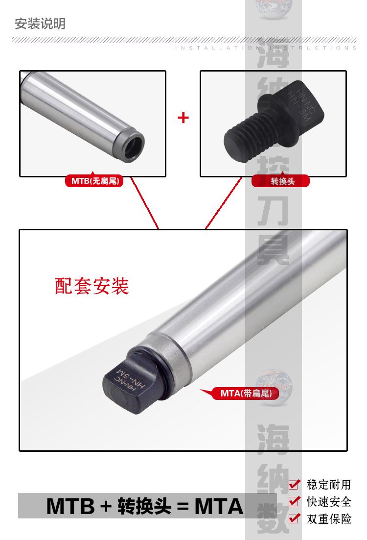 海纳HN-3M莫氏柄转接头MTB转换MTA专用锁舌锥柄转换头数控工具