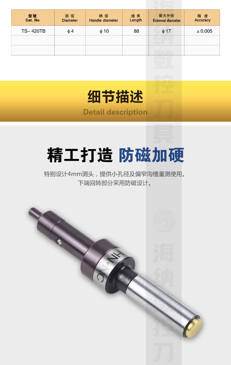 HN·NC海纳TS420TB偏心式寻边器铣床防磁分中棒无磁寻边器