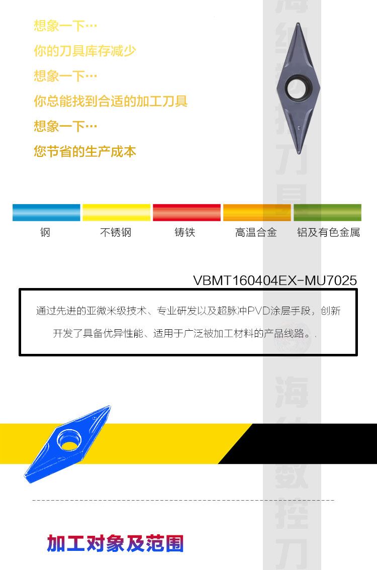 NASKA纳斯卡VBMT160404/08EX MU7025菱形硬质合金涂层数控车刀片