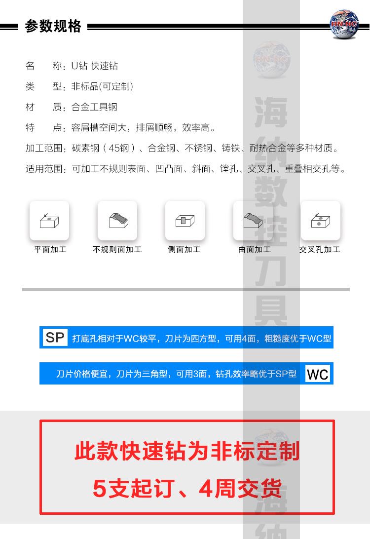 海纳定制特殊快速钻头暴力钻头U钻潜孔钻喷水可转位钻头数控刀具