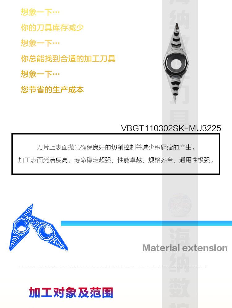 纳斯卡VBGT110302/04/08SK MU3225有色金属专用菱形镗孔数控刀片