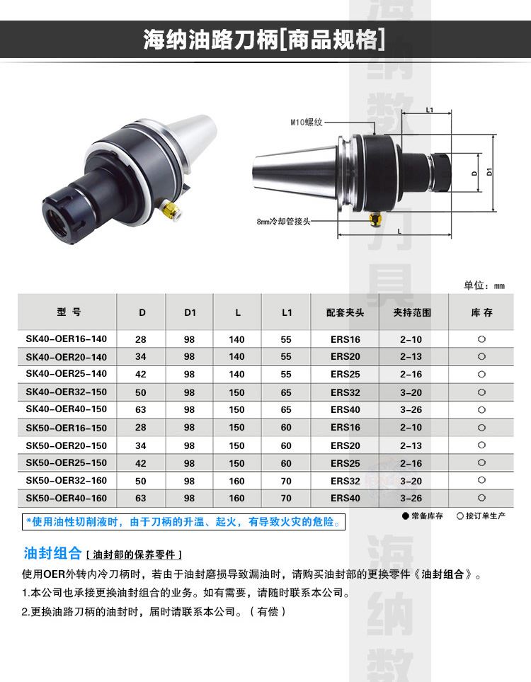 海纳SK50-OER16/20/25/32/40外转内冷油路刀柄合金钻头数控刀柄