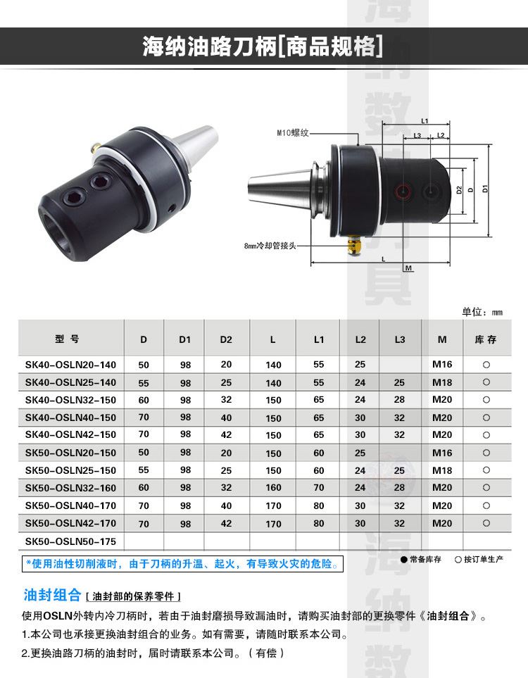 海纳SK50-OSLN20/25/32/40外转内冷油路刀柄快速U钻头数控刀柄