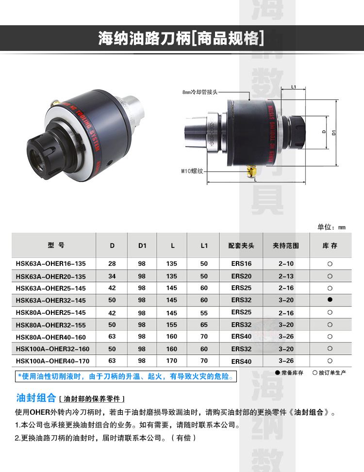 海纳HSK100A-OHER20/25/32/40中心出水外转内冷油路刀柄数控刀柄
