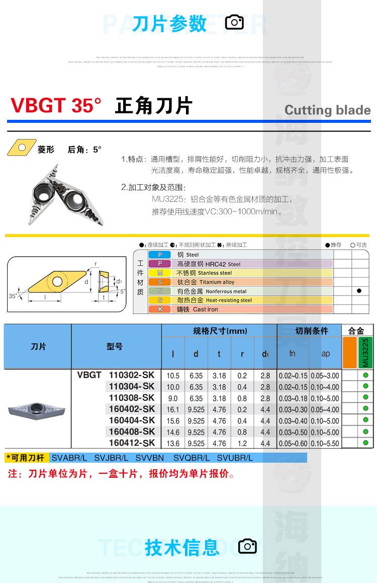 纳斯卡VBGT110302/04/08SK MU3225黄铜紫铜专用合金数控车刀片