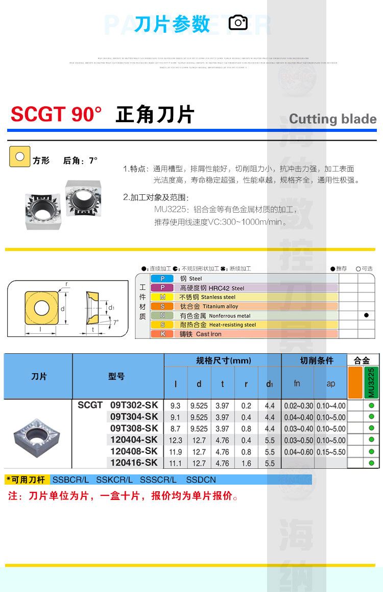 进口NASKA纳斯卡SCGT09T304SK MU3225铝合金专用正方形数控车刀片刀粒