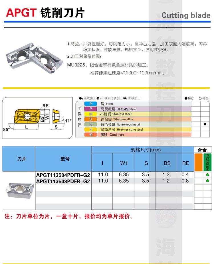 首页 > 商城 > 数控刀片 > 铣削刀片 > AP系列 > APGT