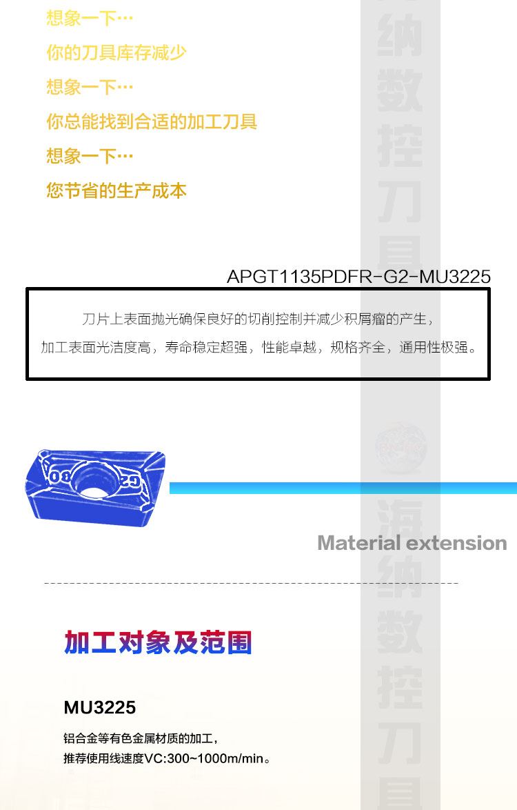 • 适用材质:铝/有色金属/非金属