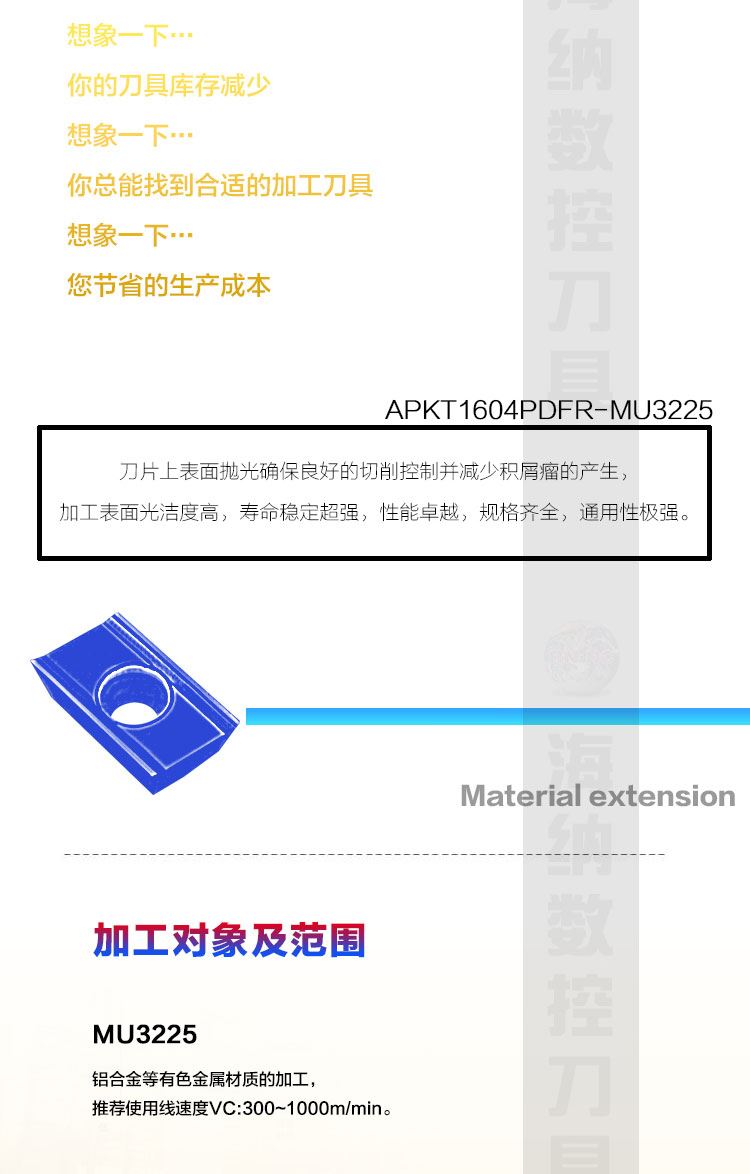 • 适用材质:铝/有色金属/非金属