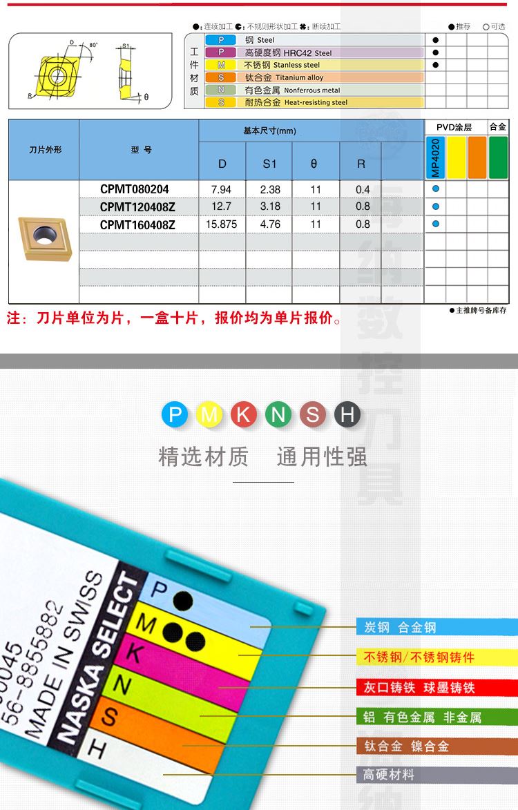 NASKA纳斯卡CPMT160408Z TD3000硬质合金数控铣刀片钻铣数控刀片