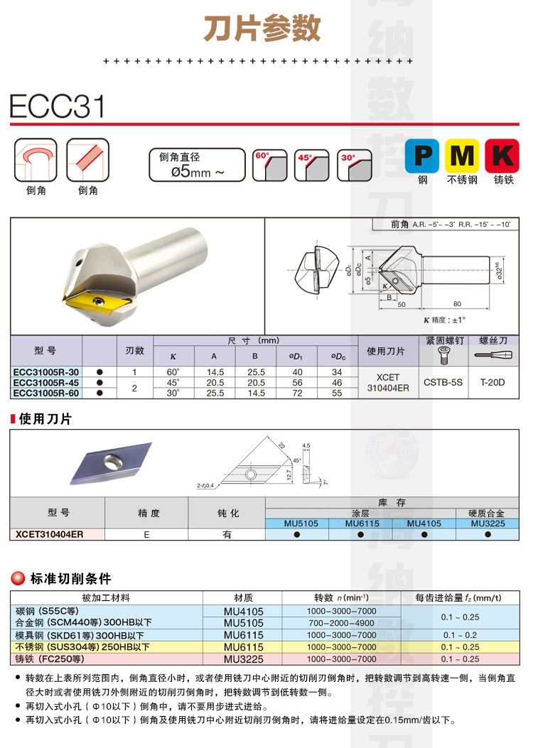 海纳XCET310404ER MU6005数控刀片硬质合金涂层倒角刀片燕尾槽数控铣刀片
