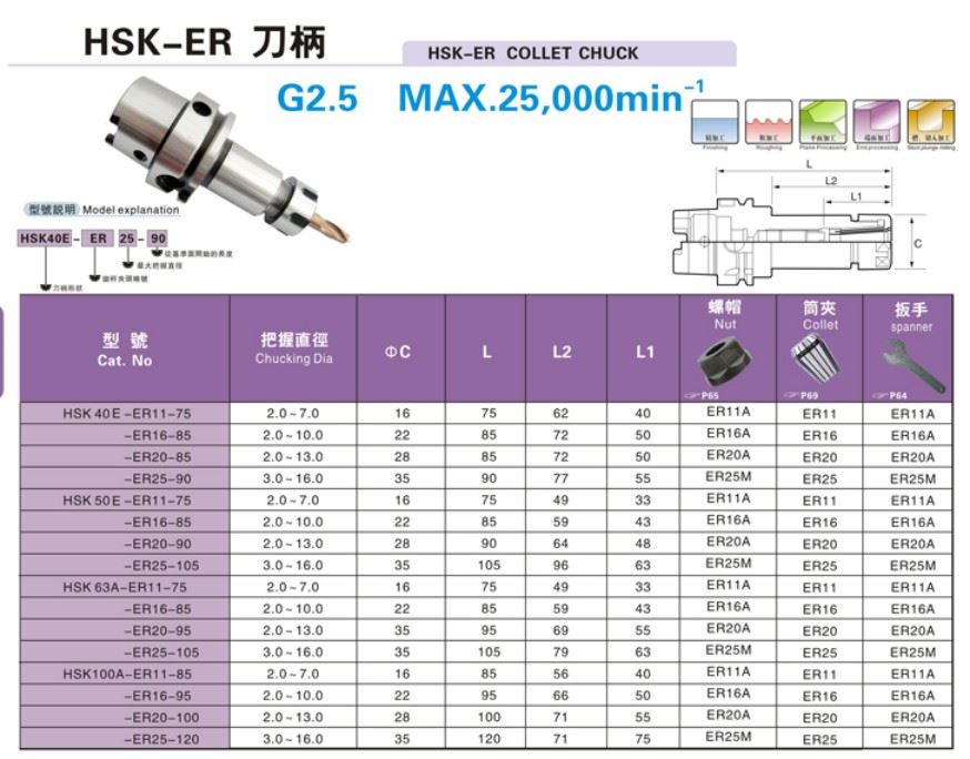 海纳HSK63A-ER11/16/20/25/32/40非标定制CNC动平衡刀柄