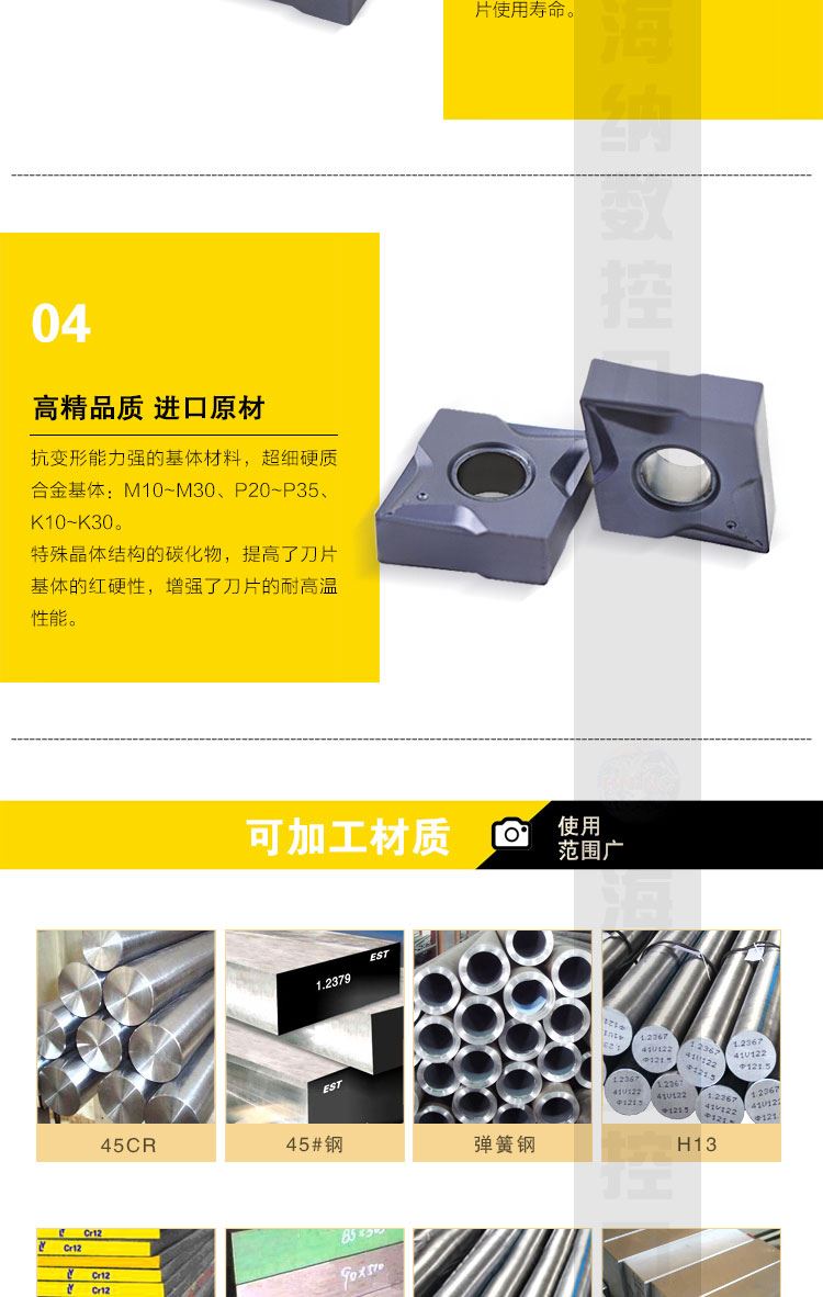 • 适用材质:碳钢/合金钢,不锈钢/不锈钢铸件,灰口铸铁/球墨铸铁,钛合金/镍合金,高硬材料