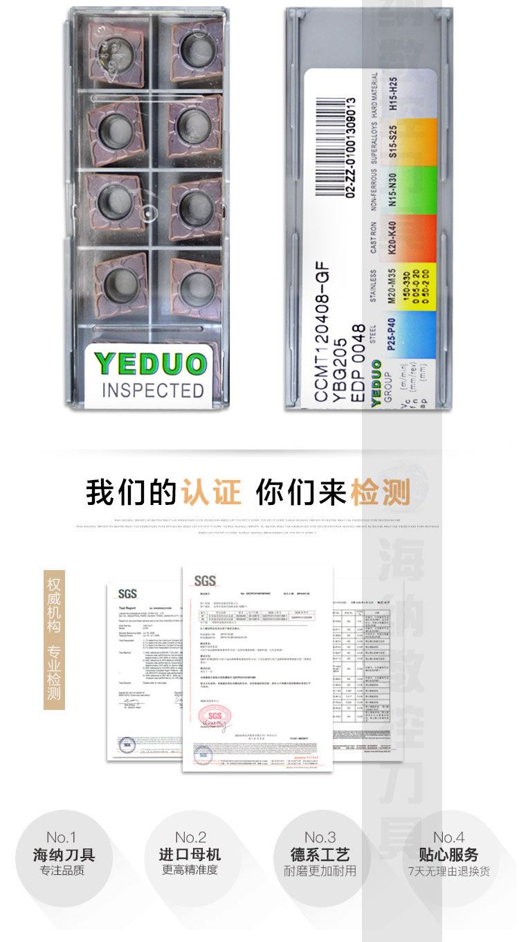原装YEDUO盈东CCMT120408GF YBG205不锈钢专用菱形数控车刀镗孔刀片刀粒