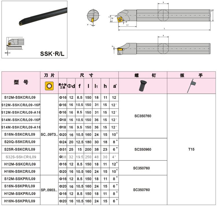 海纳内孔车刀杆S12M-SSKCR/L09数控刀具内径车刀杆
