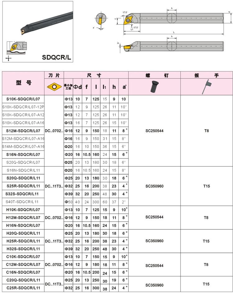 数控刀具107.5度内孔车刀杆S16R-SDQCR/L11镗刀杆