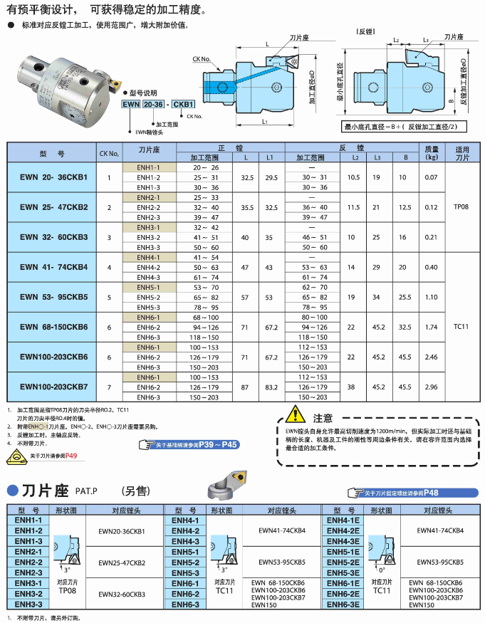 海纳EWN微调精镗头刀片座ENH1/2/3/4/5/6-1BIG搪孔器精镗刀座