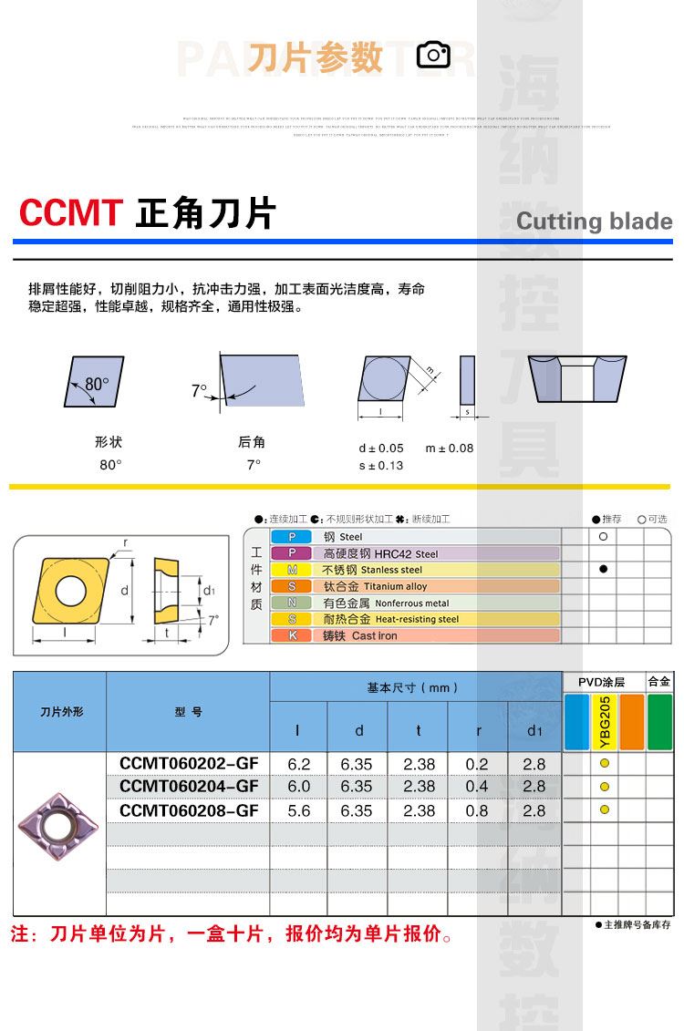 YEDUO盈东CCMT060202GF YBG205硬质合金数控车刀片不锈钢专用