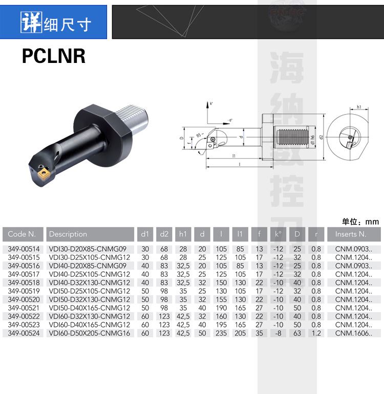 海纳PCLNR09/12/16VDI内径车刀座镗孔车刀座DIN69880内孔车刀膛刀