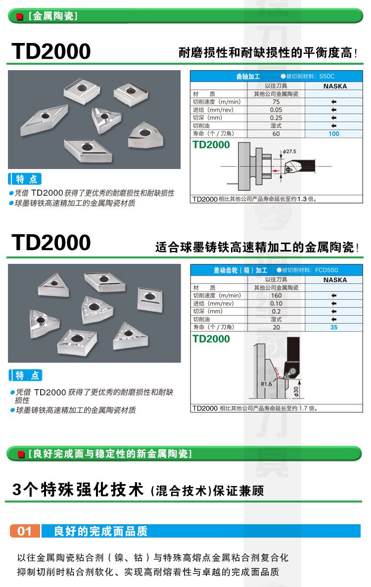 纳斯卡DCGT11T302FL-U TD2000金属陶瓷钢件专用菱形外圆精车数控刀片