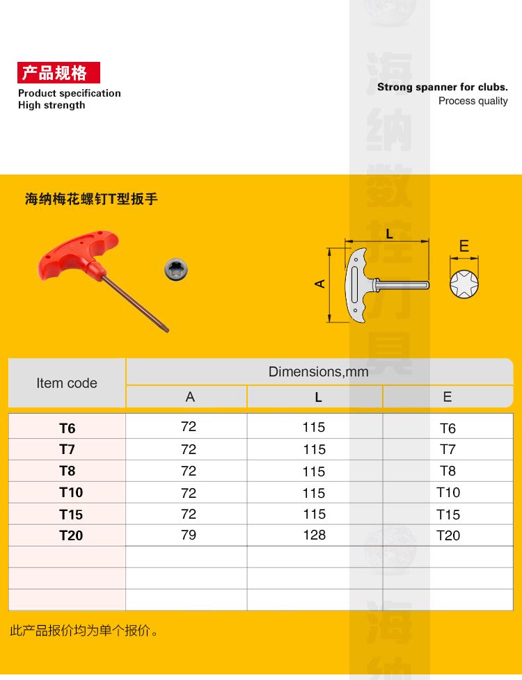 海纳T6/8/10/15/20数控刀具专用把手T型梅花星型强力扳手