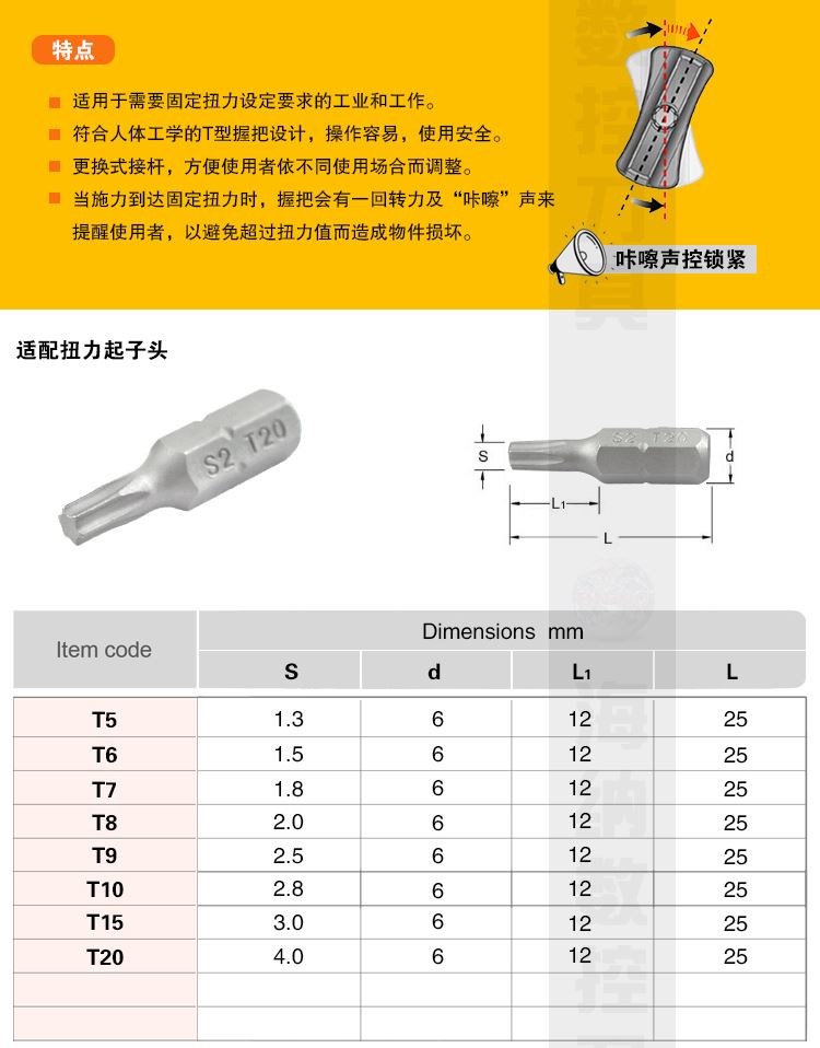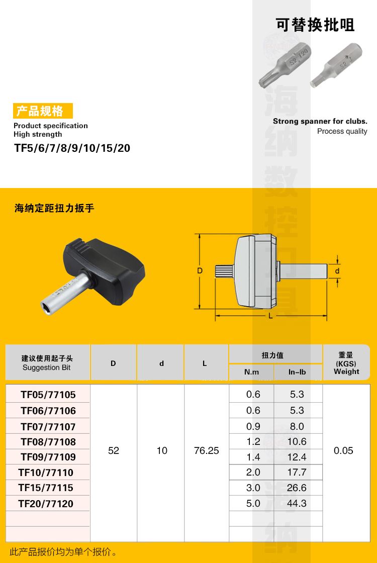 海纳TF5/6/7/8/9/10/15/20扭力定距数控刀具梅花扳手扭矩螺丝刀