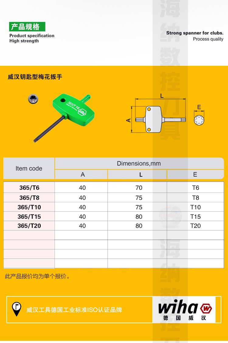 威汉WIHA钥匙型强力梅花扳手星型T6/8/10/15/20刀具配件