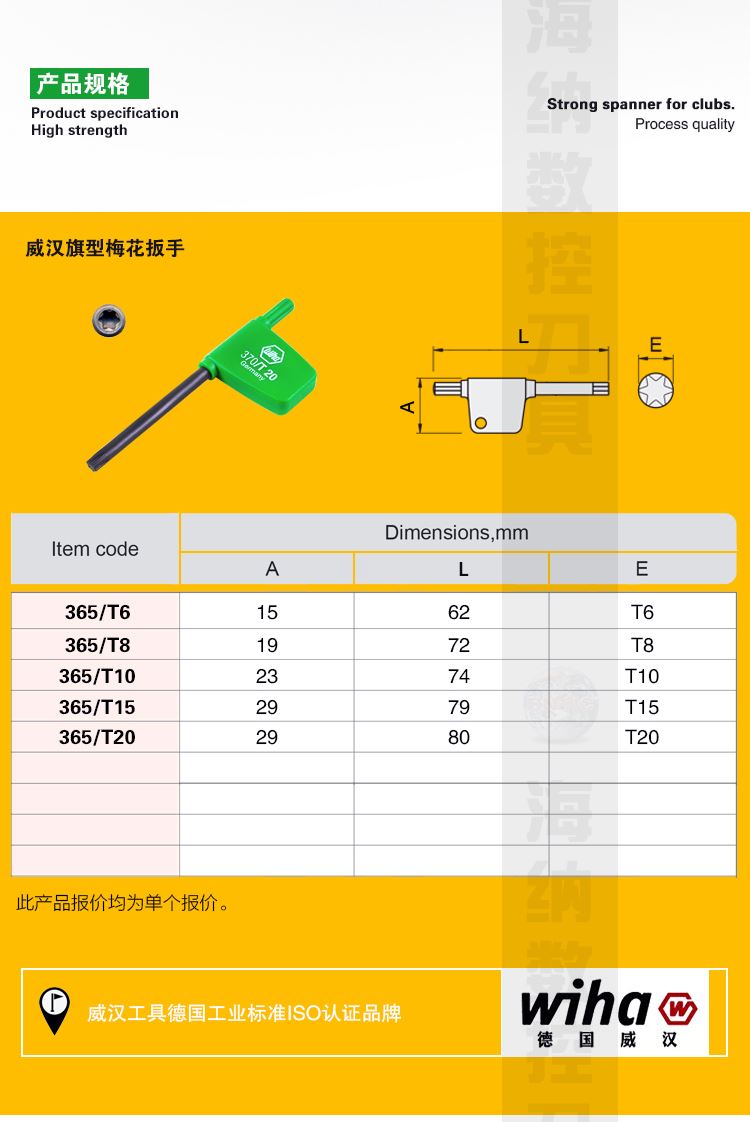 德国威汉WIHD旗型星型梅花扳手T6/8/10/15/20数控刀具配件