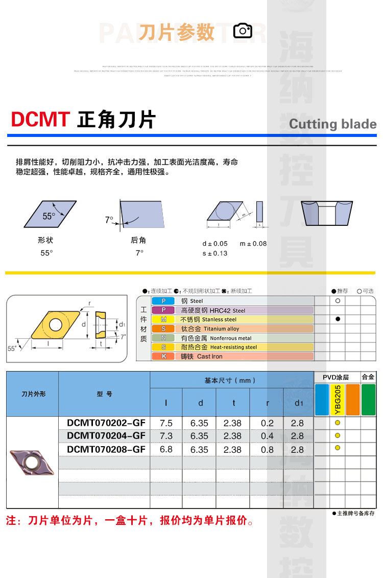 原装YEDUO盈东DCMT070202/04GF菱形55度数控车刀片不锈钢专用刀粒