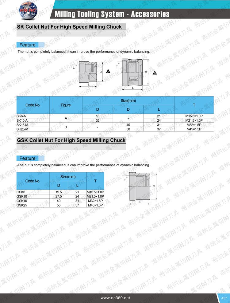 海纳SK16高速弹性筒夹数控刀柄压紧螺帽夹头螺母NUT数控刀柄螺帽