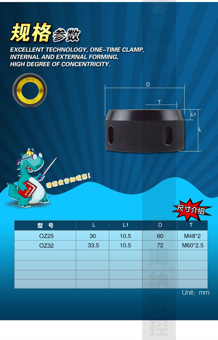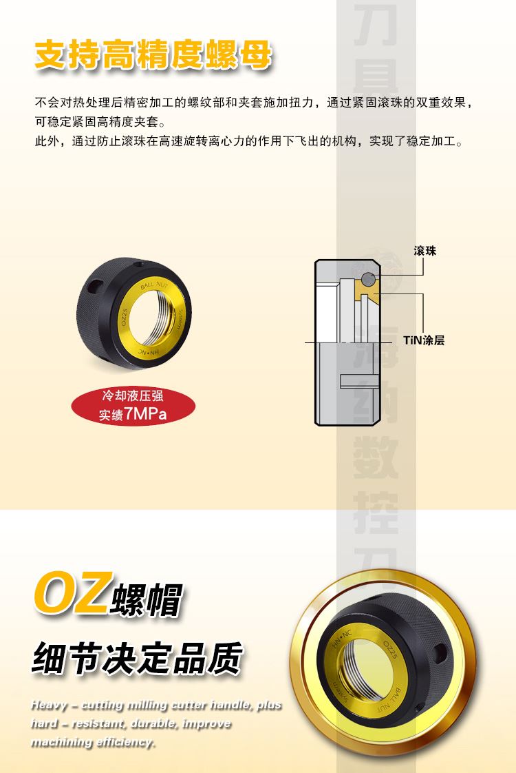 海纳BT40/50-OZ25-NUT滚珠螺帽弹簧夹头刀柄专用锁紧滚珠螺母