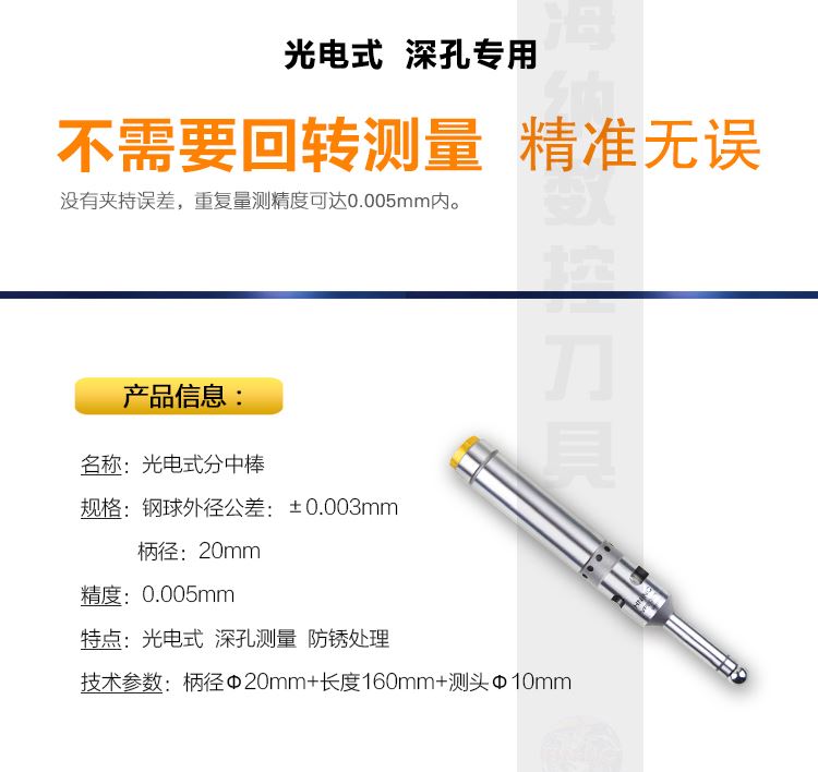 HN·NC海纳VPS-20B光电式蜂鸣寻边器电子分中棒工件找正器对刀仪