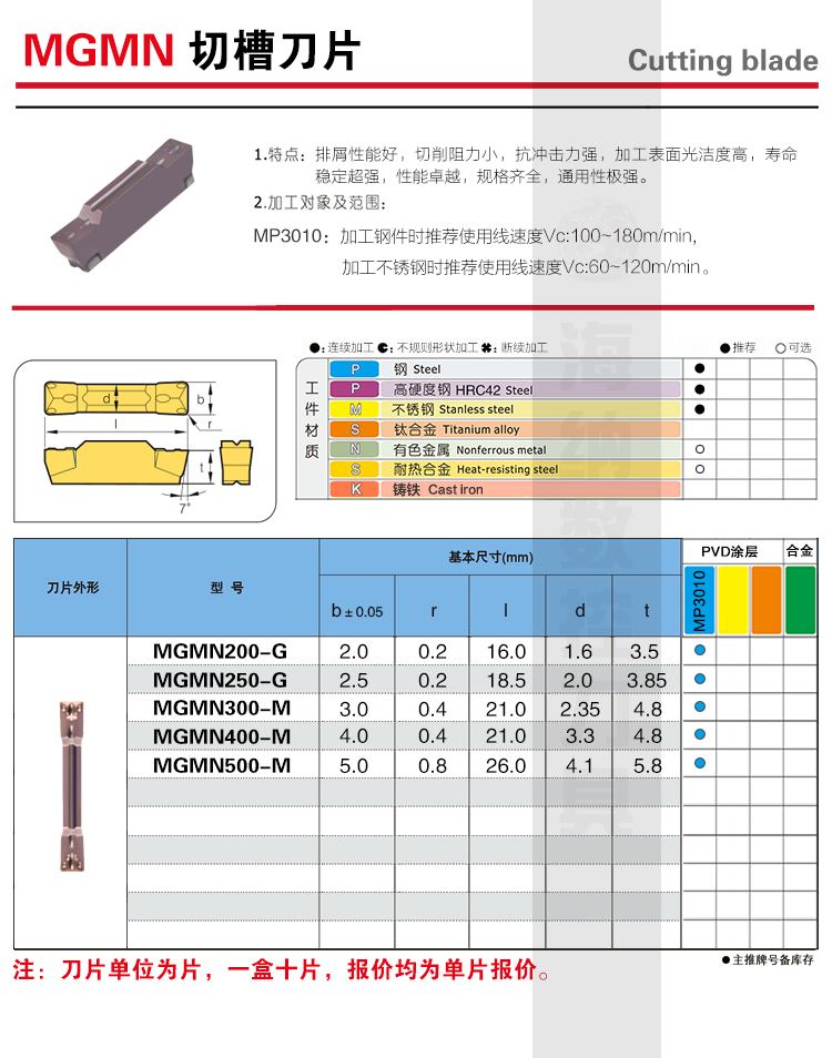 NASKA纳斯卡MGMN300M MP3010钢件不锈钢用双头切槽数控切断刀片
