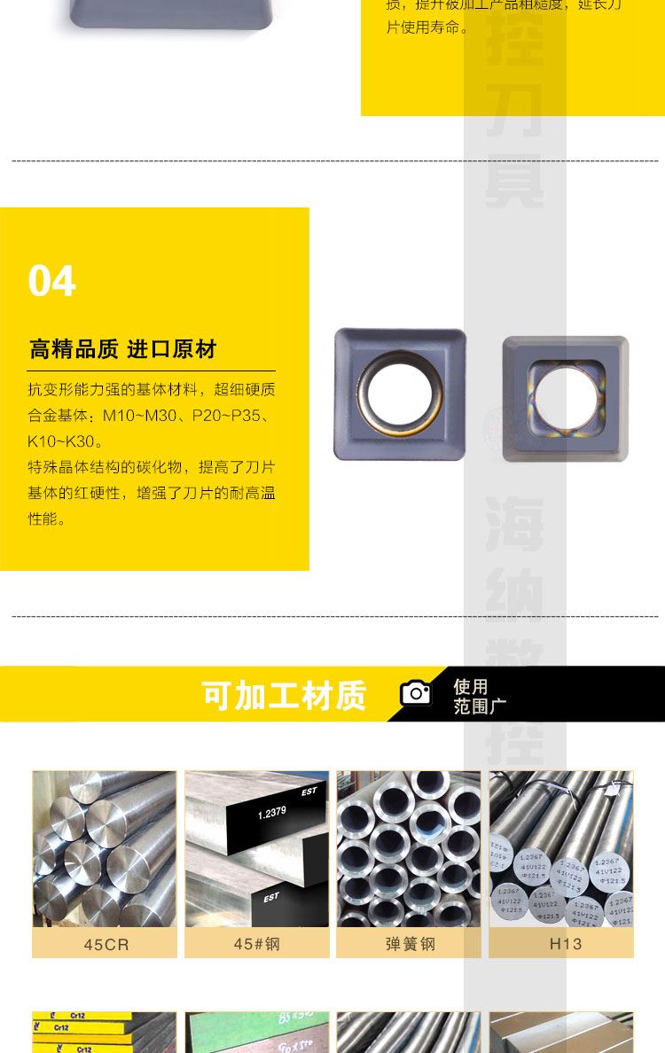 • 适用材质:碳钢/合金钢,不锈钢/不锈钢铸件,灰口铸铁/球墨铸铁,钛合金/镍合金,高硬材料