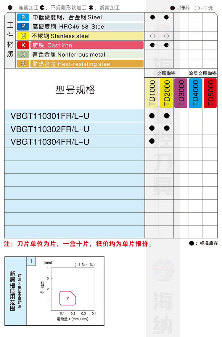 NASKA纳斯卡VBGT110301FR-U TD2000金属陶瓷菱形35度精车铸铁用车刀片